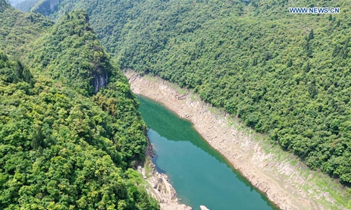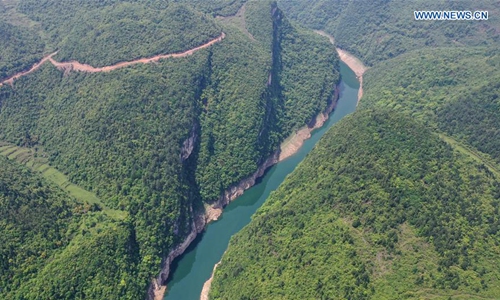 Aerial photo taken on April 26, 2020 shows the scenery of karst landform in Weng'an County, southwest China's Guizhou Province. (Xinhua/Liu Xu)