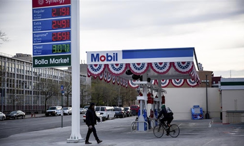 A sign displays gas prices at a gas station in the Brooklyn borough of New York, the United States, on April 20, 2020. U.S. oil prices crashed to the negative territory for the first time in history on Monday, fueled by pandemic-related demand shock and oversupply fears. The West Texas Intermediate (WTI) for May delivery shed 55.9 U.S. dollars, or over 305 percent, to settle at -37.63 dollars a barrel on the New York Mercantile Exchange, implying that producers would pay buyers to take oil off their hands. (Photo by Michael Nagle/ Xinhua)