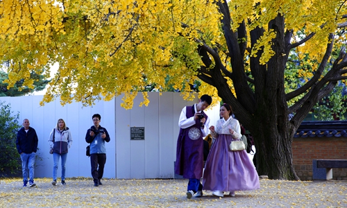 Tourists at Seoul's landmark Gyeongbokgung Palace, South Korea Photo: cnsphoto