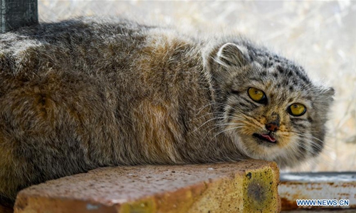 Photo taken on March 13, 2020 shows a manul rescued by Forest Public Security Bureau of Sunite Right Banner in Xilingol League, north China's Inner Mongolia Autonomous Region. In recent years, the Forest Public Security Bureau of Sunite Right Banner has strengthened its patrolling efforts and rescued many wild animals. (Xinhua/Wei Jingyu)