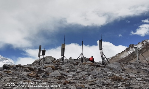 Huawei and China Mobile's 5G base station at Mount Qomolangma's base camp at 5,300 meters high Photo: Courtesy of Huawei