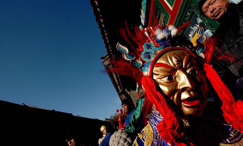 A folk artist performs in a Beijing's temple fair. Photo: VCG