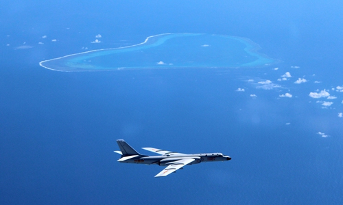 File photo shows a Chinese H-6K bomber patrolling islands and reefs including Huangyan Dao in the South China Sea. (Xinhua/Liu Rui)