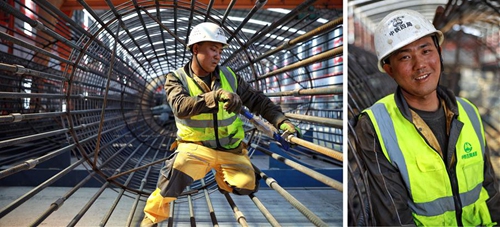 Combo photo taken on May 3, 2020 shows steel fixer Tu Zhifei bundling reinforcing bars (left) and posing for a photo at the construction site of the Renhuai-Zunyi expressway in Zunyi, southwest China's Guizhou Province. Tu, 30, from Zunyi of Guizhou, has been working as a steel fixer for more than 8 years. Many young workers have stuck to their positions during Labor Day holiday. (Photo: Xinhua)