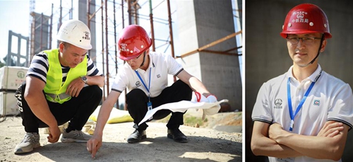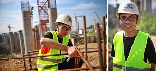 Combo photo taken on May 3, 2020 shows engineer Xiong Jingfei on work (left) and posing for a photo at the construction site of the Renhuai-Zunyi expressway in Zunyi, southwest China's Guizhou Province. Xiong, 29, from Fengcheng of Jiangxi Province, has been working as an engineer for more than 7 years. Many young workers have stuck to their positions during Labor Day holiday. (Photo: Xinhua)