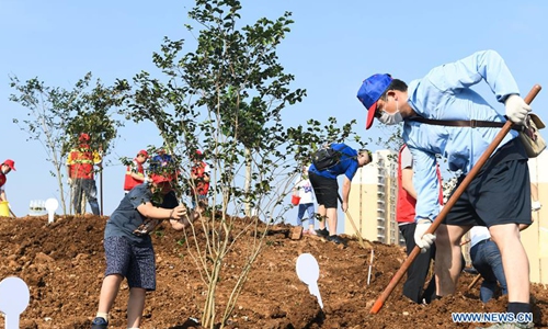 People take part in a tree planting activity marking the Chinese Youth Day in Haikou, south China's Hainan Province, May 4, 2020. (Xinhua/Yang Guanyu)