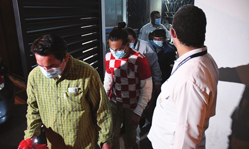 Migrants, part of a group of 76 Guatemalans deported from the US, head to a bus upon landing at the Air Force base in Guatemala City on Monday. Photo: AFP
