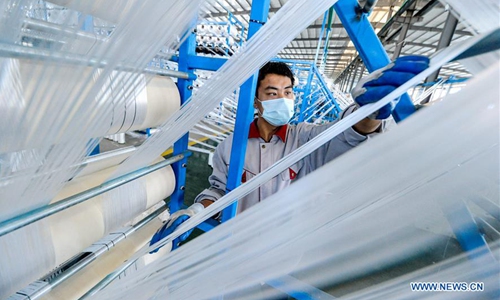 A staff member works at a factory in Jize County of Handan City, north China's Hebei Province, May 5, 2020. Companies in the county are accelerating production to meet customers' demand. (Xinhua/Wang Xiao)