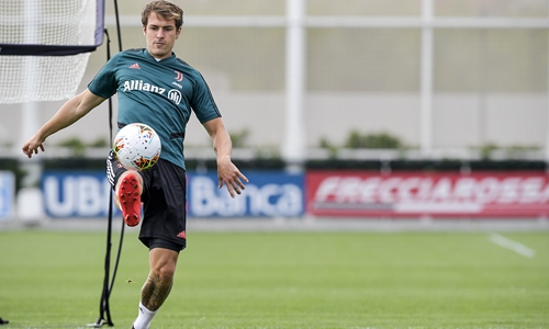 Juventus player Aaron Ramsey controls the ball during a training session on Tuesday in Turin, Italy. Photo: VCG
