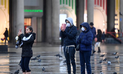 Pedestrians wearing face masks are seen on the street in Milan, Italy, March 2, 2020. Photo: Xinhua