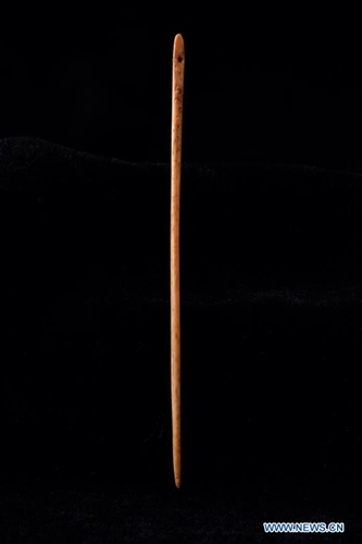Among the unearthed relics, a boar tusk carving of a silkworm, 6.4 cm long, nearly 1 cm wide and 0.1 cm thick, was believed to be China's earliest carving depicting silkworms. Experts say that the carving depicts a spinning silkworm which is quite similar to modern silkworms in appearance.