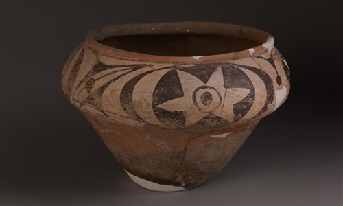 Undated file photo provided by Zhengzhou Municipal Institute of Archaeology shows a painted pottery ware unearthed in the Shuanghuaishu Remain in Gongyi City, central China's Henan Province.Photo:Xinhua