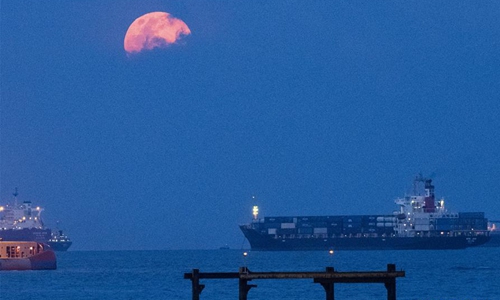 A full moon appears in the sky over Singapore on May 7, 2020. (Photo by Then Chih Wey/Xinhua)