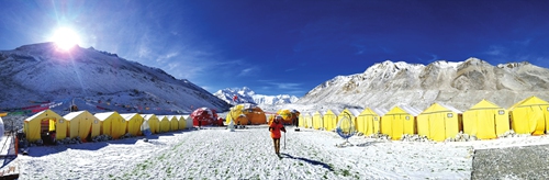 Before climbing up to the peak, the 2020 Chinese Mount Qomolangma measuring team stationed in the camp a month ago.