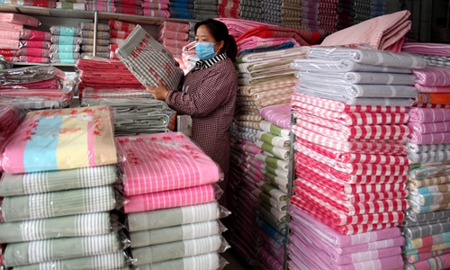 The wholesale market for coarse cloth in Boxing county, East China's Shandong Province, has fully recovered. The market is the largest coarse cloth market in China with more than 220 vendors. Photo: cnsphoto