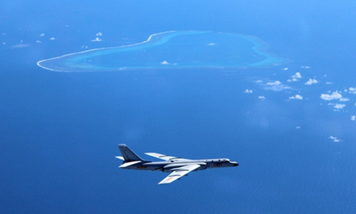 File photo shows a Chinese H-6K bomber patrolling islands and reefs including Huangyan Dao in the South China Sea. Photo: Xinhua