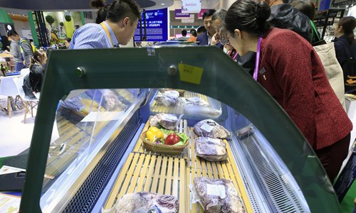 Visitors take a look at beef in the Hunter Beef booth from Australia during the China International Import Expo. Photo: Yang Hui/GT