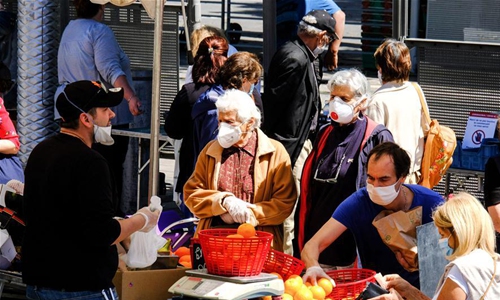 People shop at an open air market which has reopened in Nice, France, May 12, 2020. France's death toll from the coronavirus reached 26,991 on Tuesday, overtaking Spain's 26,920 as it recorded 348 more deaths in the last 24 hours. France thus became the world's fourth worst-hit country in terms of deaths after the United States, Britain and Italy, data from the Health Ministry showed. (Photo by Serge Haouzi/Xinhua)
