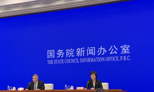 Chinese officials at a press conference of the State Council on Friday. Photo: Li Xuanmin/GT