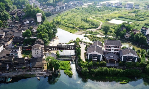 Aerial photo taken on May 16, 2020 shows the scenery of Hong'an ancient town in Xiushan County, southwest China's Chongqing Municipality. (Xinhua/Wang Quanchao)