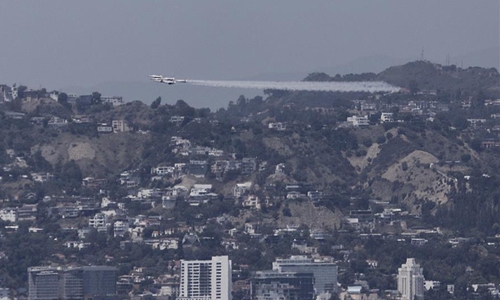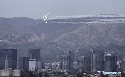 United States Air Force Thunderbirds fly over to honor frontline COVID-19 responders and essential workers in south California May 15, 2020. (Xinhua)
