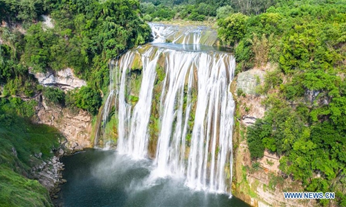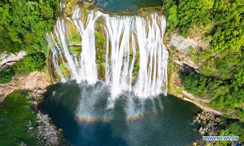 Aerial photo taken on May 16, 2020 shows the Huangguoshu Waterfall in Anshun, southwest China's Guizhou Province. Photo:Xinhua