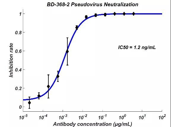 Photo: Neutralization potency of BD-368-2 antibody against pseudovirus and authentic virus, IC50 reached 8pM and 100pM respectively