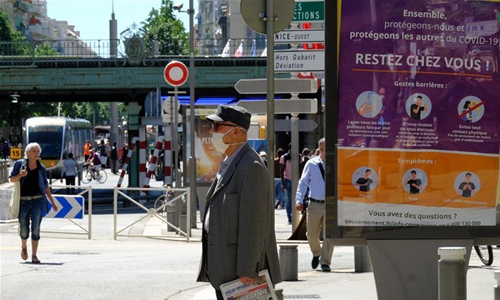 A resident wearing a face mask is seen on the street in Nice, France, May 12, 2020. France's death toll from the coronavirus reached 26,991 on Tuesday, overtaking Spain's 26,920 as it recorded 348 more deaths in the last 24 hours. France thus became the world's fourth worst-hit country in terms of deaths after the United States, Britain and Italy, data from the Health Ministry showed. (Photo by Serge Haouzi/Xinhua)