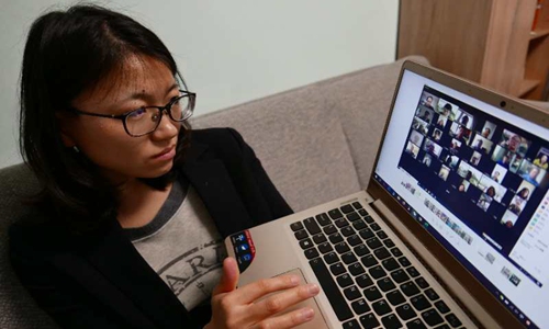 A woman holds a video conference from home. Photo: Li Hao/GT