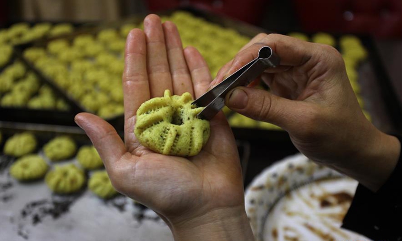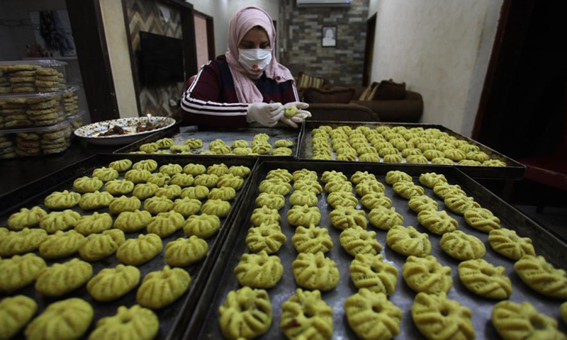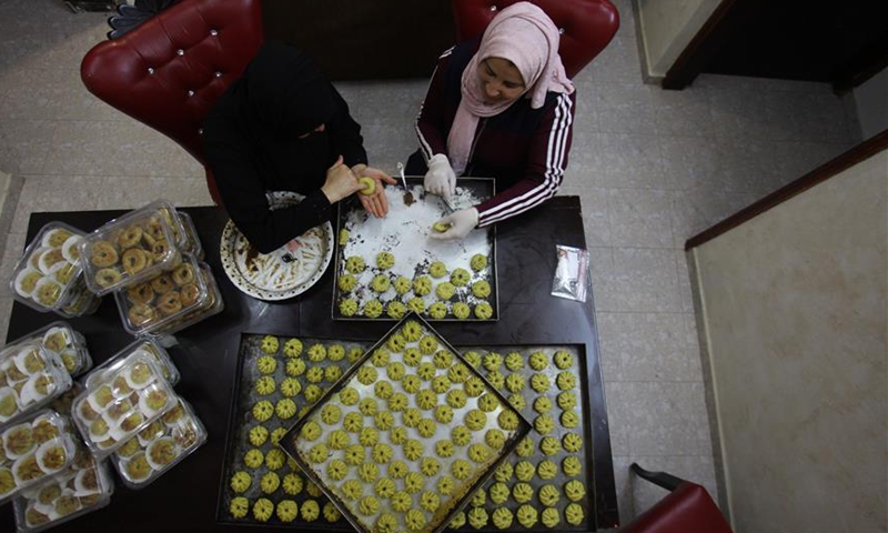 Women make traditional cookies ahead of the Eid al-Fitr festival which celebrates the end of Ramadan amid the COVID-19 lockdown in the West Bank city of Nablus, May 19, 2020. Photo:Xinhua