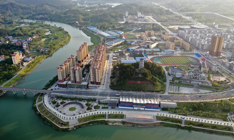 Aerial photo taken on May 13, 2020 shows a view of residential buildings in Huanjiang Maonan Autonomous County, south China's Guangxi Zhuang Autonomous Region. The Maonan ethnic group is one of China's 28 ethnic groups with a smaller population. About 70 percent of Maonan people, or 64,500, live in Huanjiang County, south China's Guangxi Zhuang Autonomous Region. The poverty headcount ratio in Huanjiang dropped to 1.48 percent by the end of 2019. In May of 2020, the county was removed from the country's list of impoverished counties. Based on the Maonan people's poverty alleviation situation across the country, the ethnic group has gotten rid of poverty as a whole. (Xinhua/Lu Boan)