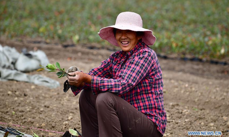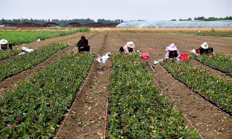 Villagers work at a nursery in Wancheng District of Nanyang City, central China's Henan Province, May 20, 2020. Local authorities have been promoting characteristic nursery industry in recent years to facilitate the increase of farmers' incomes. Photo:Xinhua