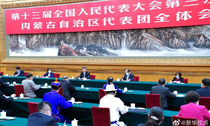 President Xi Jinping, also general secretary of the Communist Party of China Central Committee and chairman of the Central Military Commission, on Friday afternoon took part in a deliberation with his fellow deputies from the delegation of Inner Mongolia Autonomous Region, at the third session of the 13th National People's Congress, China's national legislature.