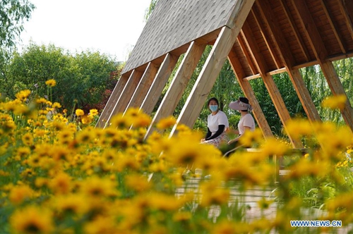 Tourists enjoy leisure time at Qingquan park transformed from a coal mining area in Fengfeng Mining Area in Handan, north China's Hebei Province, May 23, 2020. Fengfeng Mining Area used to be an old mining area with a history of 100 years, thriving and developing by its coal resource. In recent years, the area is putting the pedal to the metal to restore its environment and promote all-for-one tourism. Up to now, the area has restored environment of 90 mines. (Xinhua/Mu Yu)