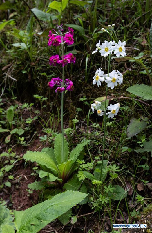 Photo taken on May 24, 2020 shows the primulas in full bloom in Hanyuan County, southwest China's Sichuan Province. Wild primulas usually grow by rivers or at moist areas 2,000 to 2,500 meters above sea level.Photo:Xinhua