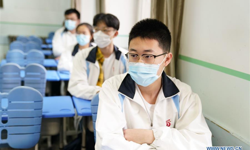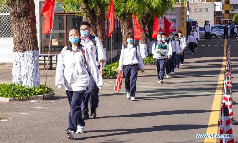 Senior students attend activities in Heilongjiang Experimental High School in Harbin, northeast China's Heilongjiang Province, May 25, 2020. Students in their final year of high school in Heilongjiang returned to campus on Monday. (Xinhua/Wang Song)