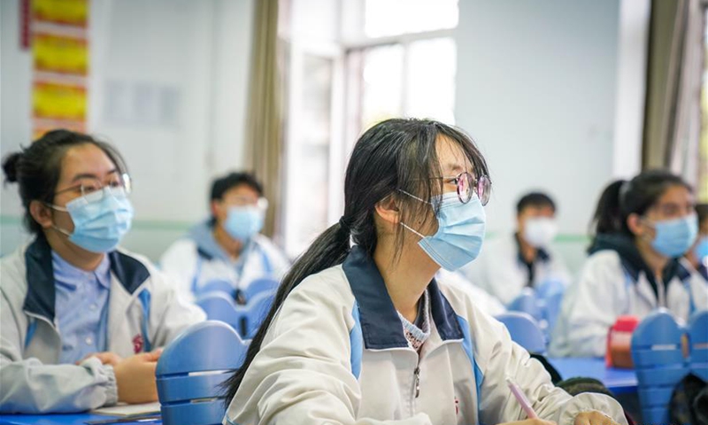 Senior students study in classroom in Heilongjiang Experimental High School in Harbin, northeast China's Heilongjiang Province, May 25, 2020. Students in their final year of high school in Heilongjiang returned to campus on Monday. (Xinhua/Wang Song)