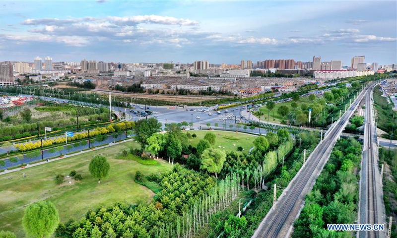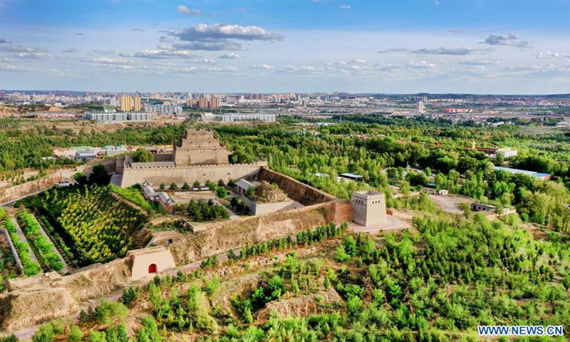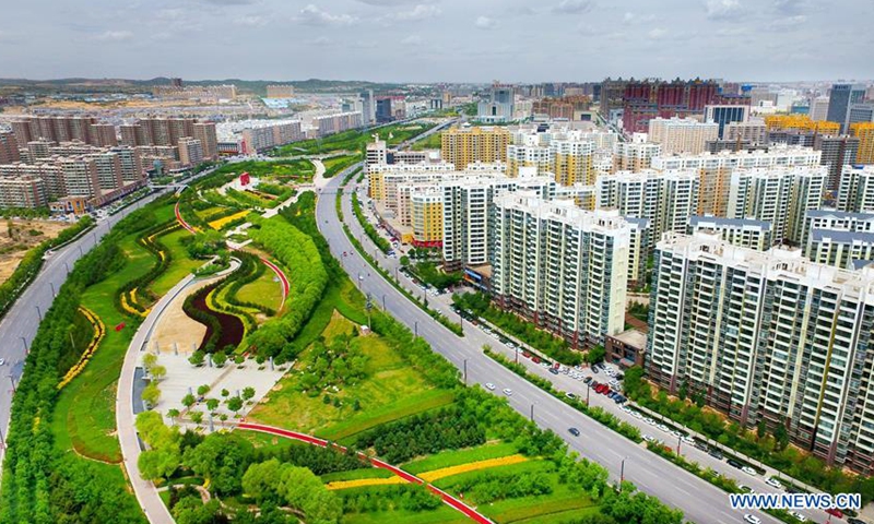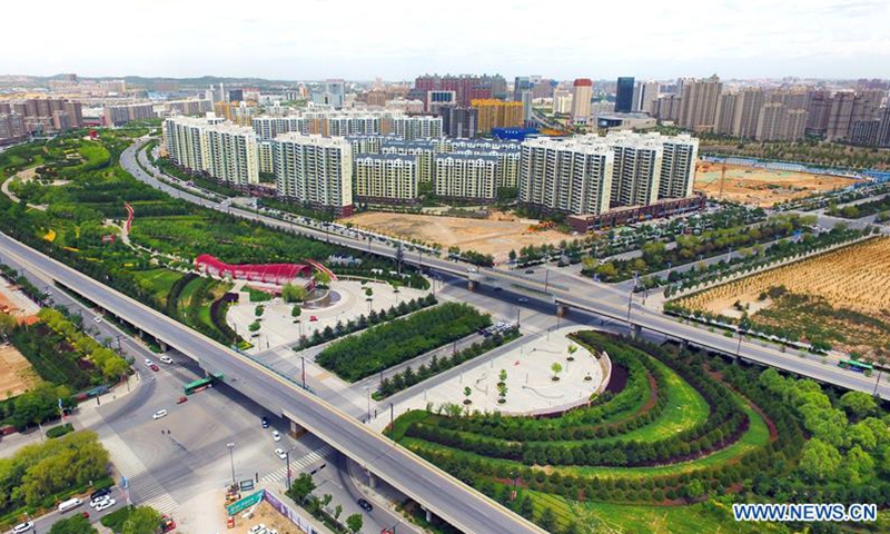 Aerial photo taken on May 25, 2020 shows a view of Yulin City, northwest China's Shaanxi Province. Yulin City, which used to suffer from severe soil erosion and desertification, has been making efforts on afforestation since April, 2017. In November of 2019, the city was granted the status of National Forest City. (Xinhua/Tao Ming)
