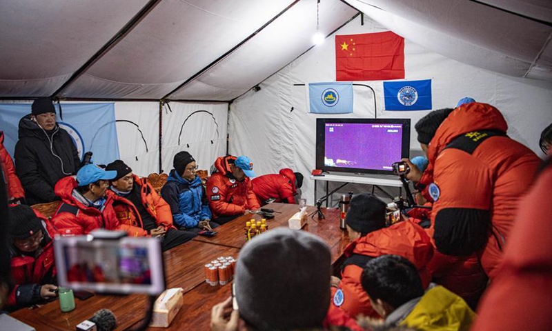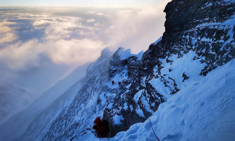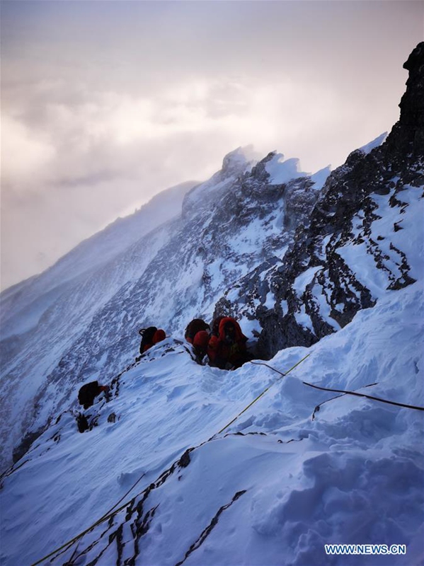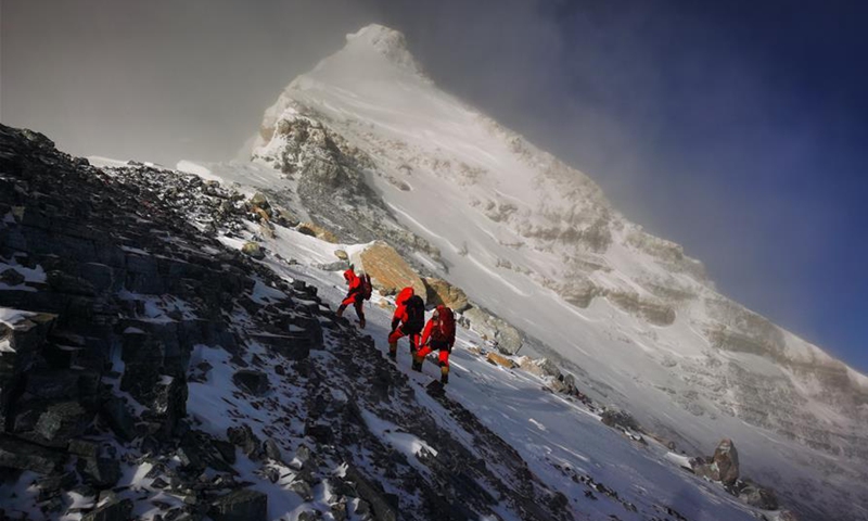 Chinese surveying team prepares to set off to reach the summit of Mt. Qomolangma, the world's highest peak, from a mountain camp at an altitude of 8,300 meters, on May 27, 2020. (Xinhua/Penpa)