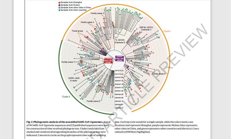 Based on the analysis of 112 quality samples from 326 confirmed cases reported in Shanghai between January 20 and February 25, researchers found two major lineages (clade I and clade II) with differential exposure history during the early phase of the outbreak in Wuhan.