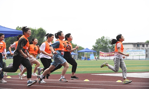 Students take part in a 800 meter sprint (female) sports test at Nanming district in Guiyang, capital of Southwest China's Guizhou Province on Tuesday as part of the middle school's graduating students tests this year. Photo: cnsphoto