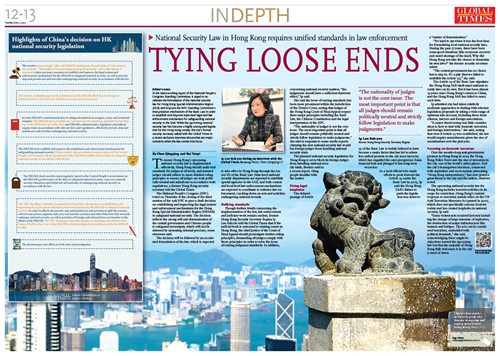 Unifying standards Though further details concerning the implementation of the law, law enforcement and judiciary work remain unclear, former Hong Kong Security Secretary Regina Ip Lau Suk-yee told the Global Times that if the judicial work is entrusted to existing courts in Hong Kong, the chief justice of the Court of Final Appeal should promulgate further ruling principles, demanding all judges comply with those principles in order to solve the issue of varying judgment standards. In addition, concerning national security matters, "the judgments should have a sufficient deterrent effect," Ip said.