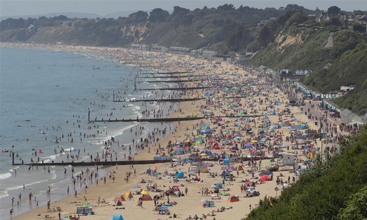 Photo taken on May 30, 2020 shows people on Bournemouth Beach in Bournemouth, Britain. British Prime Minister Boris Johnson on Thursday unveiled some "limited" and "cautious" easing of the country's coronavirus lockdown measures. (Photo by Tim Ireland/Xinhua)