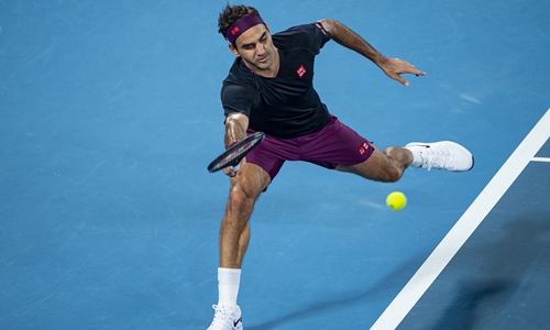 Roger Federer plays a forehand in his semifinal match against Novak Djokovic at the Australian Open on January 30 in Melbourne. Photo: VCG