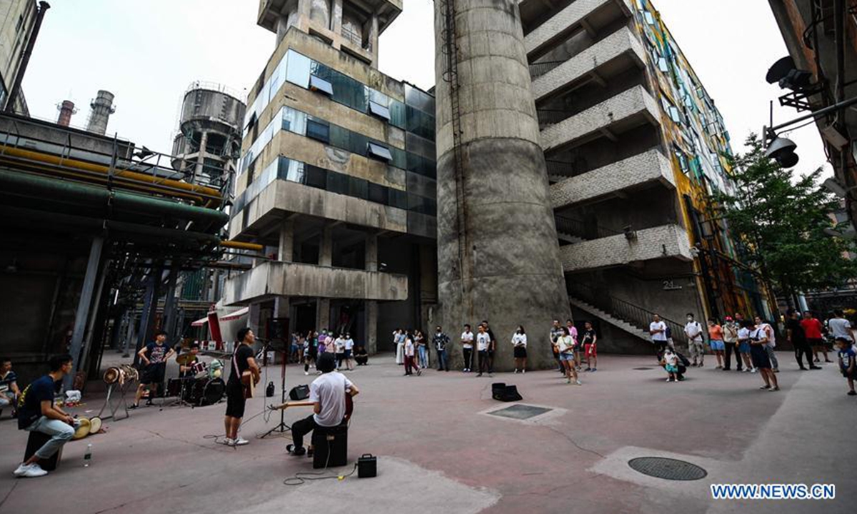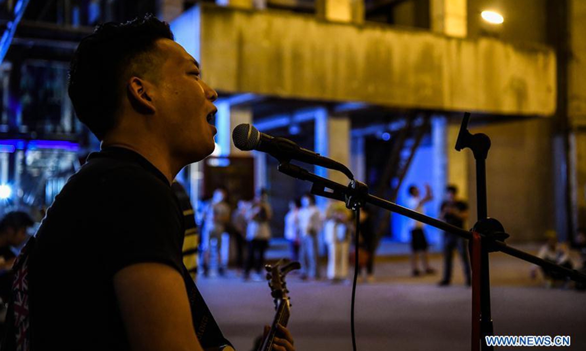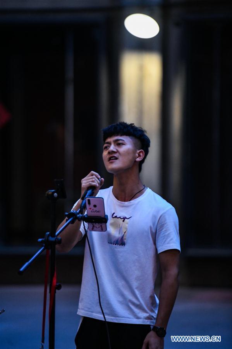 Artists perform on a street in Chengdu, capital of southwest China's Sichuan Province, May 31, 2020. Street performance has returned in Chengdu amid the further containment of the novel coronavirus disease (COVID-19). (Xinhua/Wang Xi)