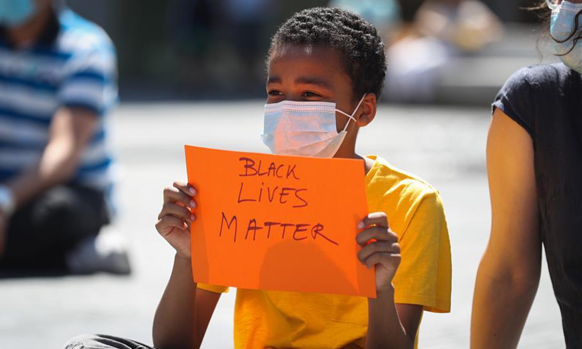 A boy takes part in a demonstration over the death of George Floyd in central Brussels, Belgium, June 1, 2020. (Xinhua/Zheng Huansong)