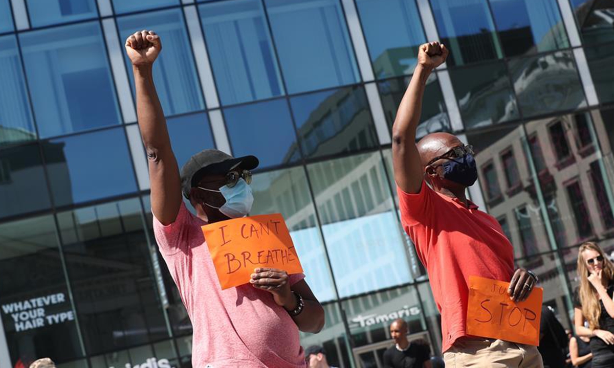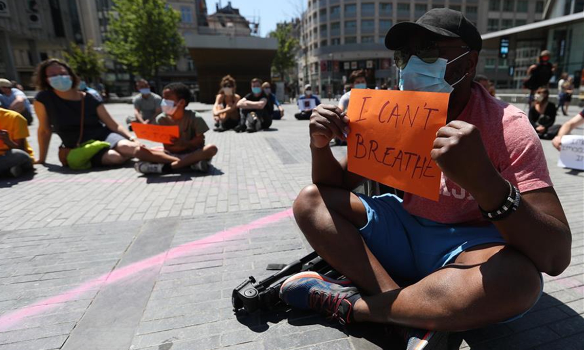 People take part in a demonstration over the death of George Floyd in central Brussels, Belgium, June 1, 2020. (Xinhua/Zheng Huansong)