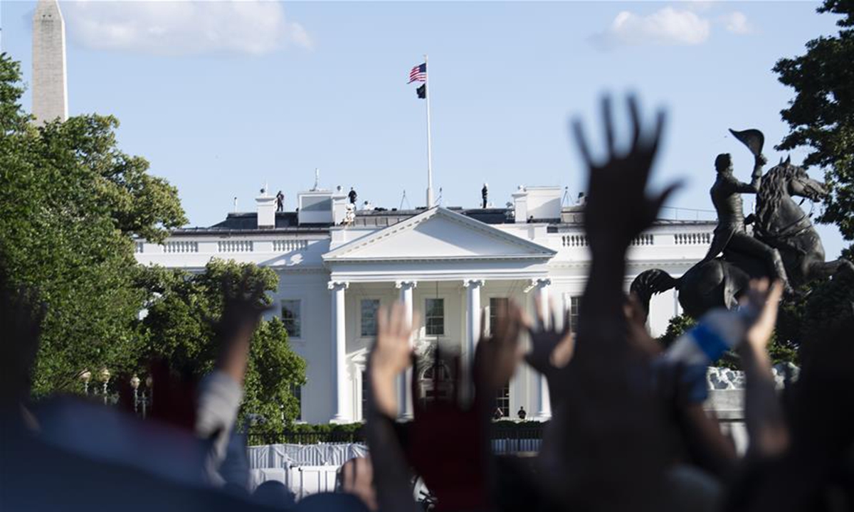 Protesters rally in front of the White House during a protest over the death of George Floyd in Washington D.C., the United States, on May 31, 2020. Protests over the death of George Floyd, an unarmed black man killed in Minneapolis police custody, continued in cities across the United States. (Xinhua/Liu Jie)