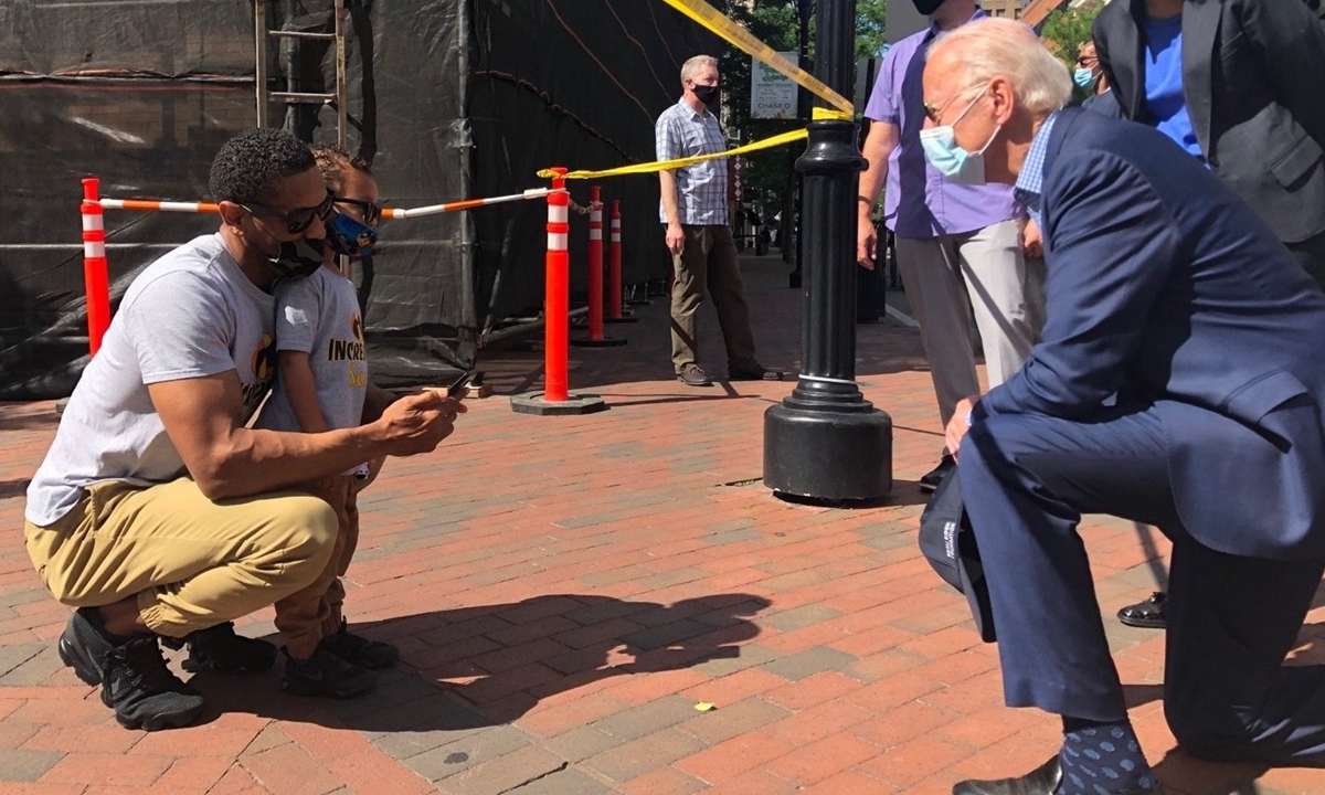 After criticizing Trump for stoking racism, he visited a protest site on Monday in Delaware and talked to the protesters there. He promised on social media that he would lead the conversation in the confrontation and listen to people's appeals if he wins.