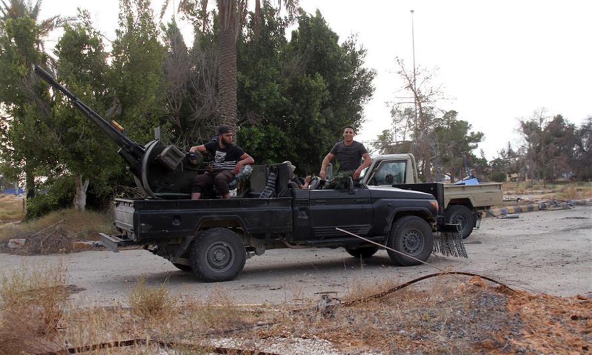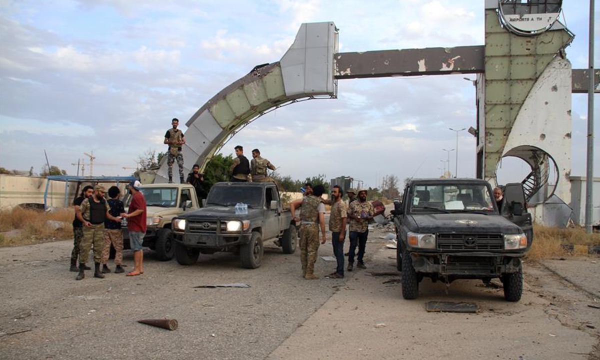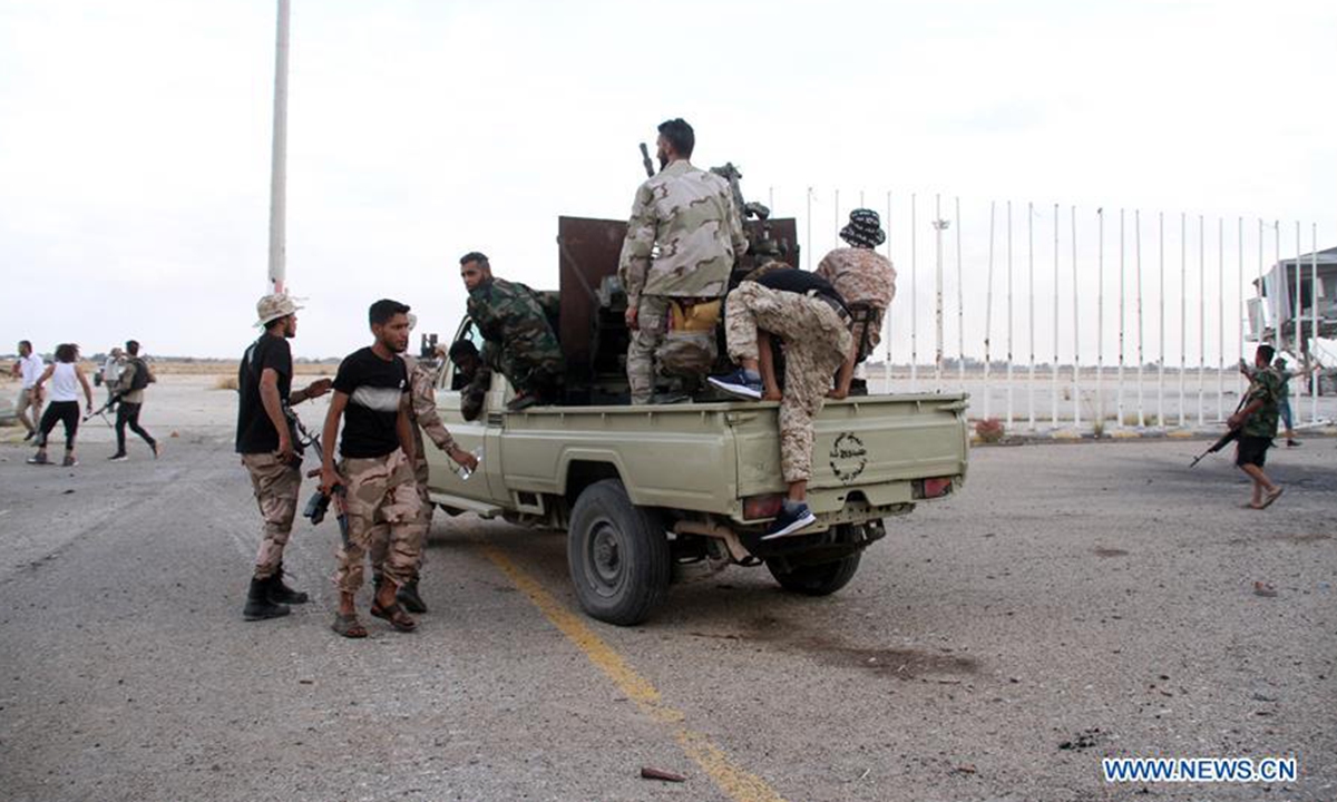 Fighters of Libya's UN-backed government are seen at an airport in the south of Tripoli, Libya, on June 3, 2020. Forces of Libya's UN-backed government on Wednesday announced taking over the former International Airport in the south of Tripoli from the rival eastern-based army, as the armed conflict between the two parties continues. (Photo by Hamza Turkia/Xinhua)